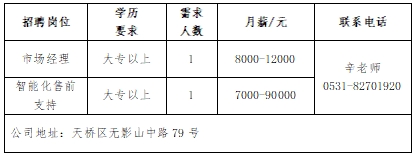 为进一步做好未就业高校毕业生和失业青年就业促进工作,充分发挥人力资源社会保障部门保企业用工、稳就业形势作用,积极搭建供需对接平台,帮助高校毕业生等重点群体实现高质量充分就业,由市人力资源社会保障局主办,市公共就业服务中心承办的“服务促就业 筑梦赢未来”高校毕业生等青年就业服务攻坚行动专场网络招聘会于10月19日举办。邀请15家企业参与,提供就业岗位信息300多个,详情如下:
