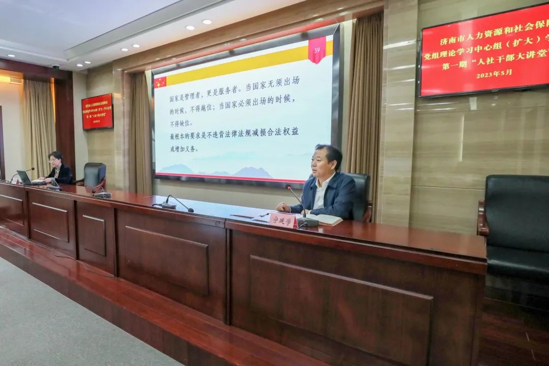 5月6日,市人力资源社会保障局举办局党组理论学习中心组(扩大)学习会暨第一期“人社干部大讲堂”,邀请省高级人民法院行政审判庭副庭长、三级高级法官王颖以“依法行政的基本要求及应有理念”为主题进行授课。市委组织部副部长,市人力资源社会保障局党组书记、局长宁延学主持活动。