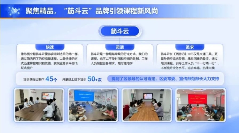 今年以来,市中区人社局探索建立系统分类分级培训体系,高标准构建“区-街道-社区(村)”的“1+17+N”三级联动、涵盖人社六大业务培训体系,组建了一支涵盖各业务板块的专业化培训师资队伍;围绕人社窗口业务,结合窗口服务人员实际需求,制作了通俗易掌握的办事流程教学短视频45个,命名《筋斗云·人社系统分类分级培训课程》,赋予快速、灵活、超越、追求的核心理念,并及时下发到街道、社区。目前,已开展线上线下业务培训宣讲150余场,依托《筋斗云·人社系统分类分级培训课程》组织开展窗口业务人员线上线下培训50余场次,有力推动人社基层平台业务经办水平和服务能力提升,更好地满足了企业群众对高质量人社服务的需求。