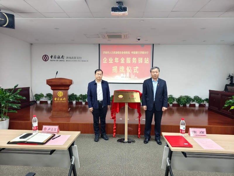 10月10日,由市人力资源社会保障局、中国银行济南分行共同举办的“济南人社企业年金中行服务驿站”揭牌仪式在中国银行济南高新支行举行。市人力资源社会保障局党组成员,市社会保险事业中心党组书记、主任张彦,中国银行济南分行党委委员、副行长卢士玉参加活动并致辞。