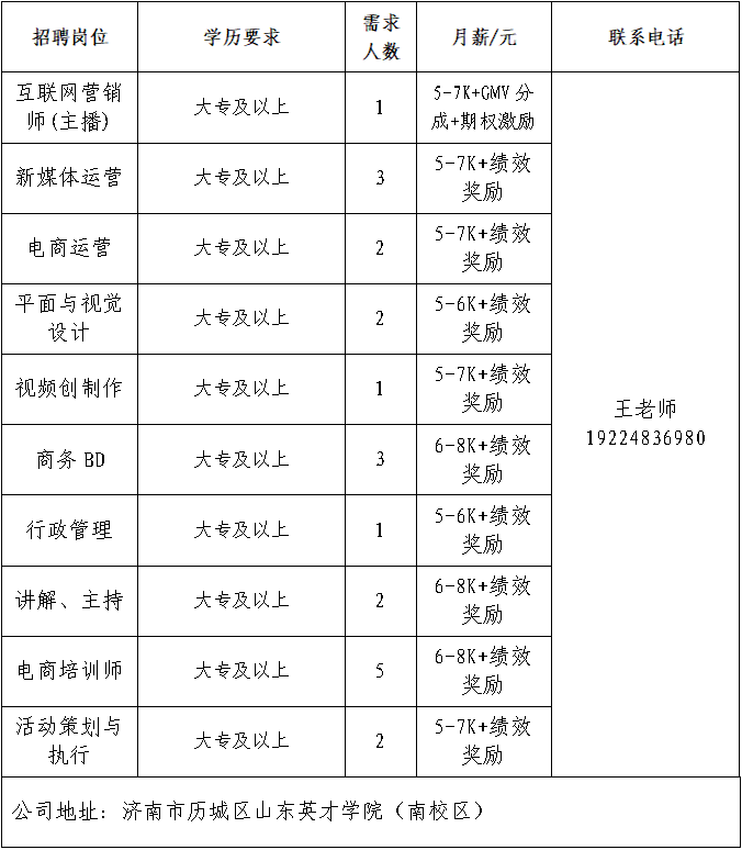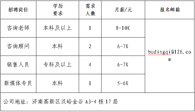 企业报名参加招聘,求职者咨询更多招聘岗位信息请致电市人力资源市场: