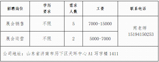 企业报名参加招聘,求职者咨询更多招聘岗位信息请致电市人力资源市场: