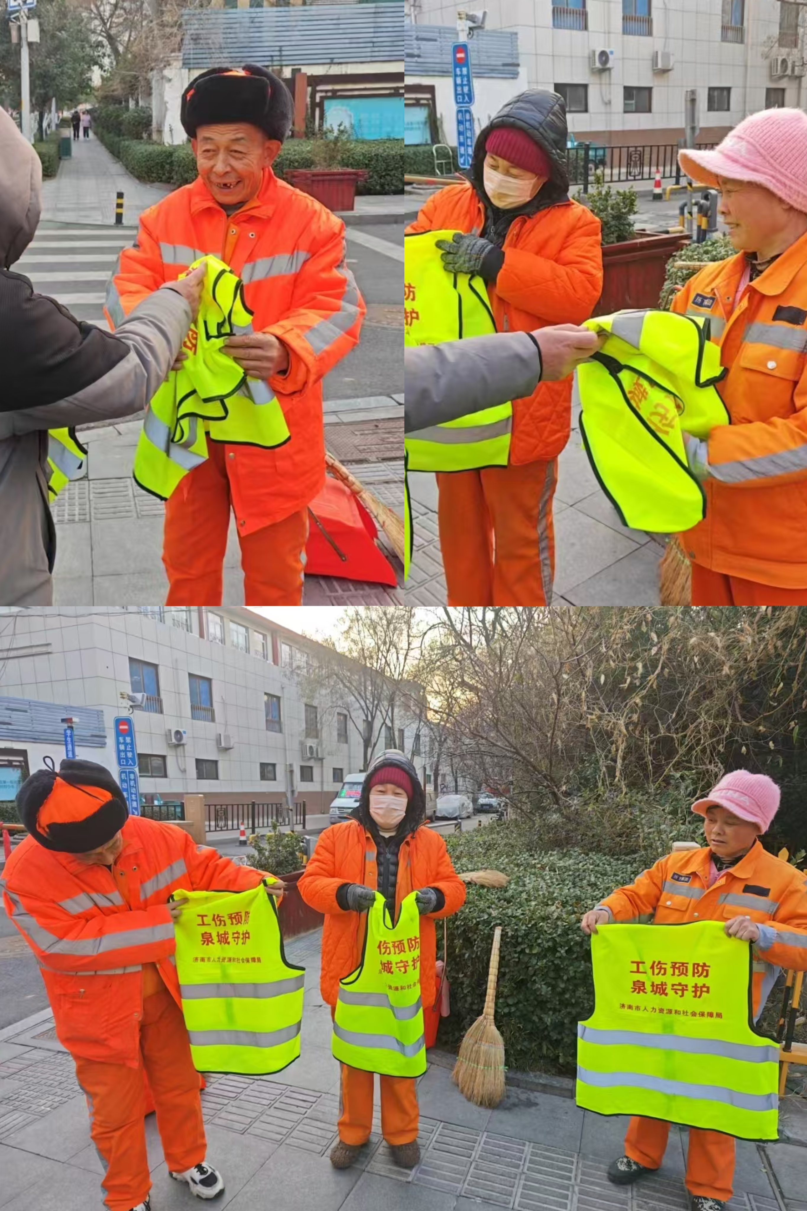 此次活动不仅注重业务知识的传授,更体现了对环卫工人的关怀与温暖。区人社局为环卫工人精心准备了350件反光安全背心作为慰问品,背心在夜晚或光线不佳的环境能有效提高环卫工人的可视度,降低他们在道路作业时遭遇交通事故的风险,为他们的安全出行和工作增添了一份坚实的保障。当一件件反光背心发放到环卫工人手中时,大家的脸上洋溢着感动与喜悦。