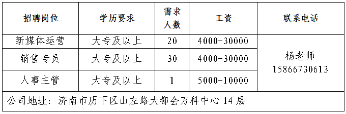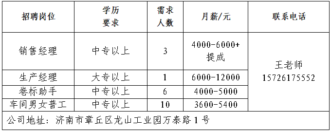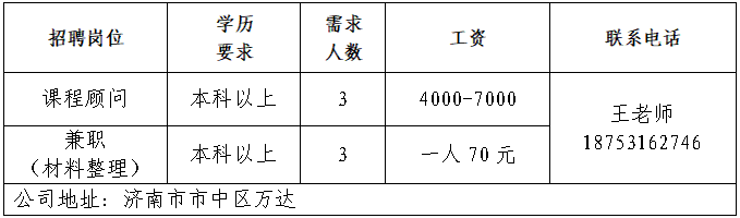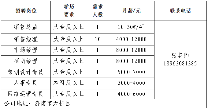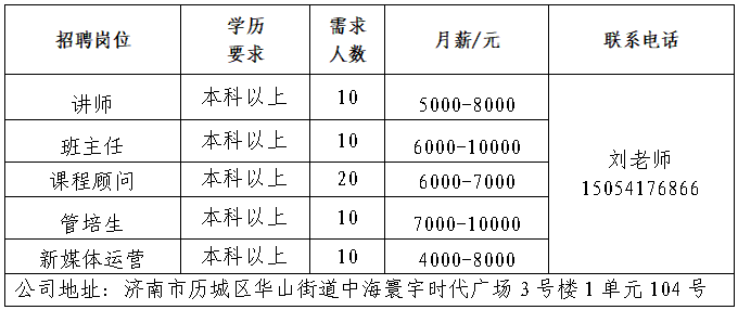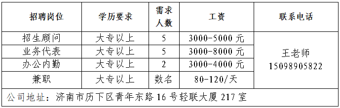 企业报名参加招聘,求职者咨询更多招聘岗位信息请致电市人才市场: