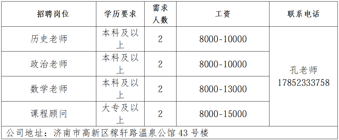 联系人:胡老师 联系电话:0531-85800632