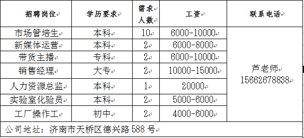 企业报名参加招聘,求职者咨询更多招聘岗位信息请致电市人才市场: