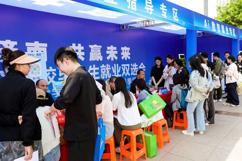 为更好服务求职者和企业,招聘会现场设置了直播带岗、AI数智就业、就业指导、政策宣传等就业服务点,形成“线上+线下”“智能+人工”的全方位服务体系,助力求职者精准匹配岗位、提升求职效率,也帮助企业高效招揽人才,充分发挥了双选会的桥梁纽带作用。