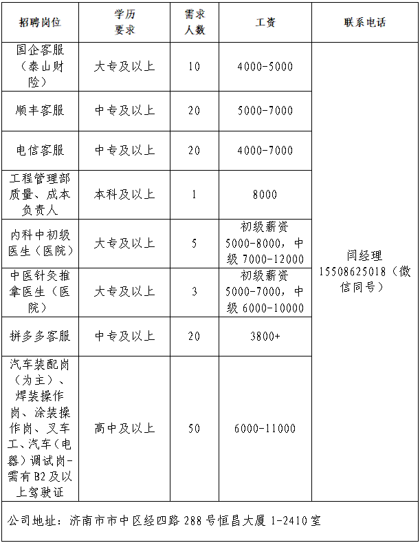 企业报名参加招聘,求职者咨询更多招聘岗位信息请致电市人力资源市场: