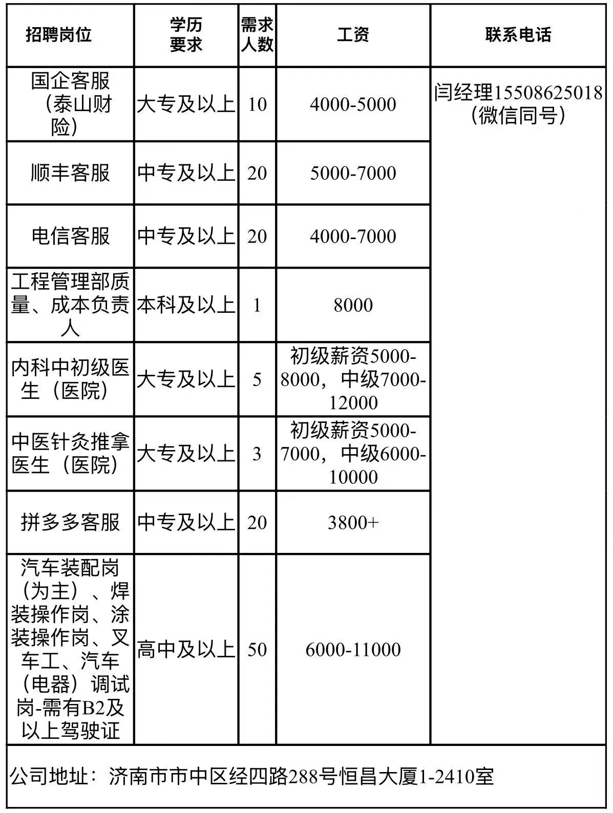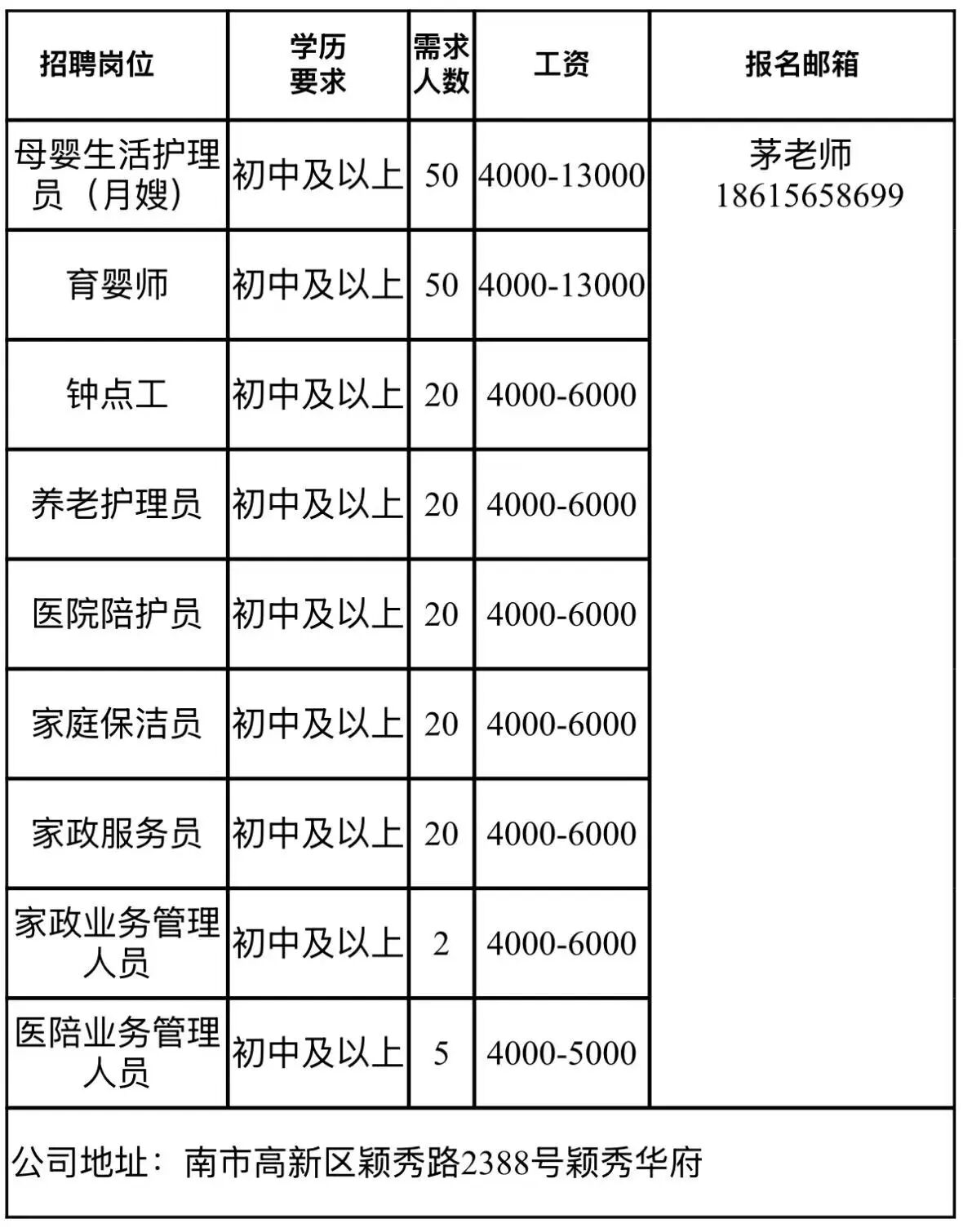 企业报名参加招聘,求职者咨询更多招聘岗位信息请致电市人力资源市场: