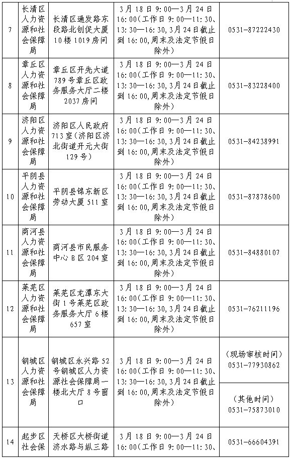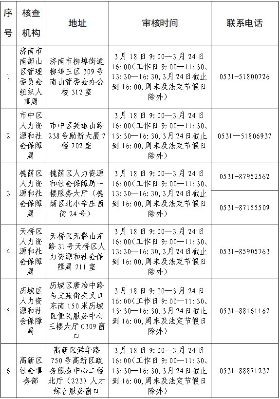 济南考区的资格核查工作由各区县人事考试机构负责,报名期间资格核查时间:2026年3月18日9∶00-3月24日16∶00(工作日9:00-11:30,13:30-16:30,3月24日截止到16:00,周末及法定节假日除外) 。