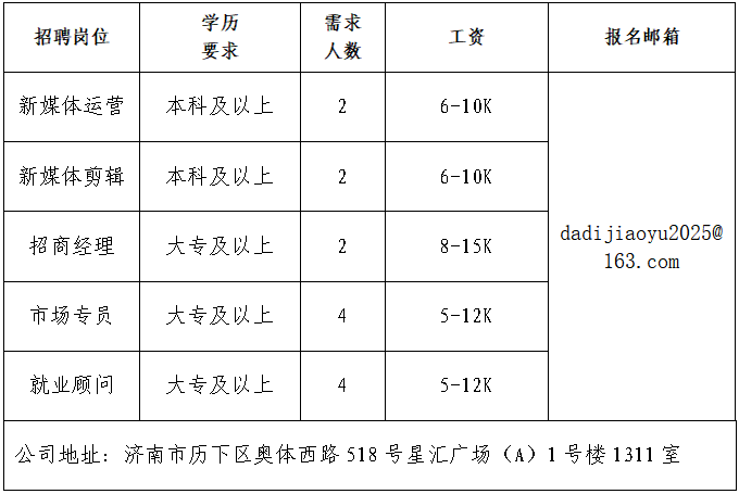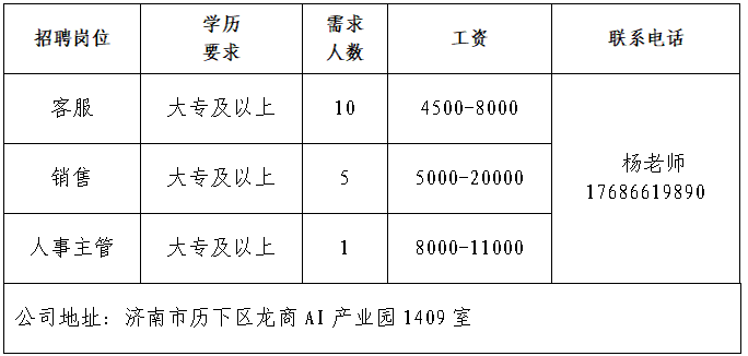 企业报名参加招聘,求职者咨询更多招聘岗位信息请致电市人力资源市场: