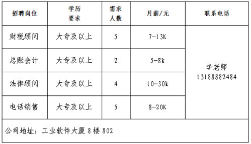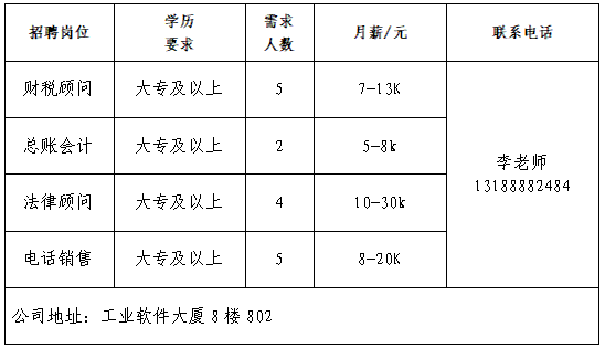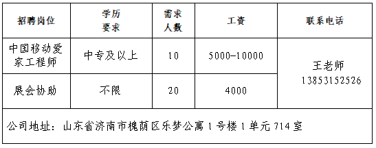 企业报名参加招聘,求职者咨询更多招聘岗位信息请致电市人力资源市场:
