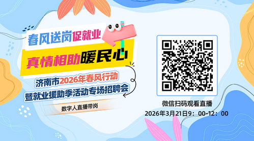 为抢抓住春节后招聘旺季黄金时机,充分发挥人力资源社会保障部门稳就业、保用工、促发展作用,助力失业人员、零工群体、农村劳动力等重点群体实现高质量充分就业,市公共就业服务中心定于3月21日(周六)市人才市场举办“春风送岗促就业 真情相助暖民心”济南市2026年春风行动暨就业援助季活动专场招聘会。