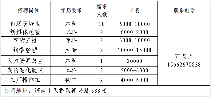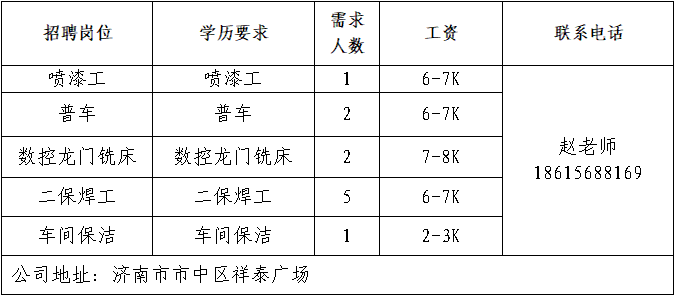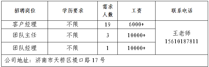 企业报名参加招聘,求职者咨询更多招聘岗位信息请致电市人才市场: