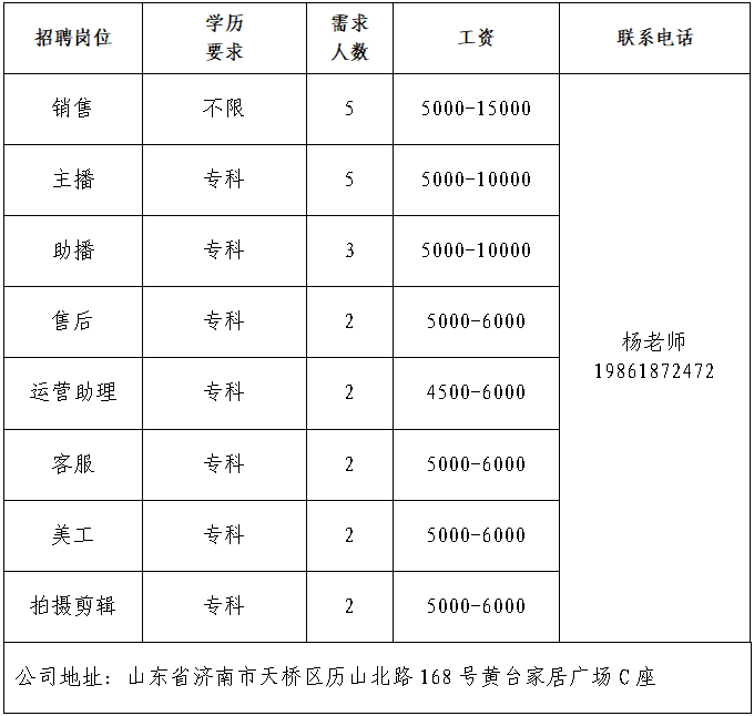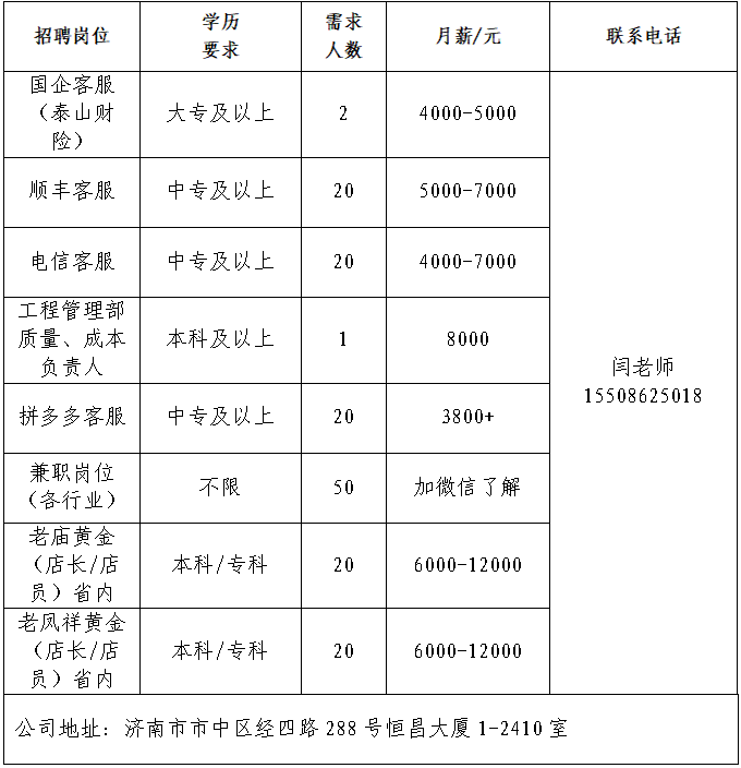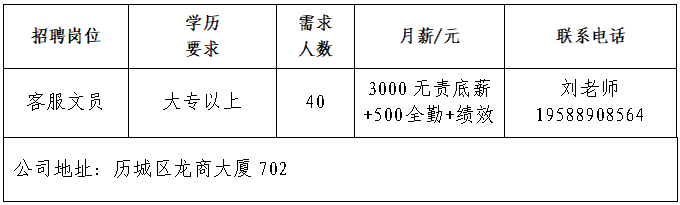 企业报名参加招聘,求职者咨询更多招聘岗位信息请致电市人力资源市场: