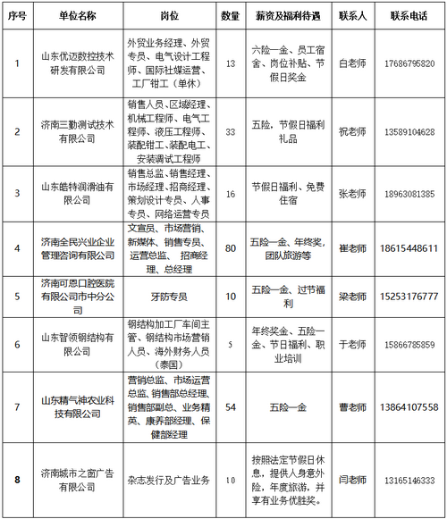 届时东优迈数控技术研发有限公司、济南三勤测试技术有限公司等知名企业现场招贤纳士,职位涵盖机械工程师、电气工程师、销售经理、新媒体运营、招商经理、杂志发行及广告业务等各类岗位340多个。活动当日同步开展AI直播带岗,求职者可扫码上线观看参与。