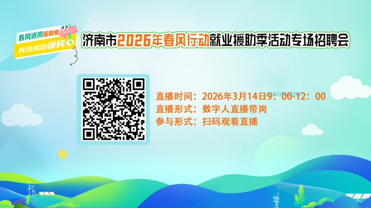 为抢抓住春节后招聘旺季黄金时机,充分发挥人力资源社会保障部门稳就业、保用工、促发展作用,助力失业人员、零工群体、农村劳动力等重点群体实现高质量充分就业,市公共就业服务中心定于3月14日(周六)市人才市场举办“春风送岗促就业 真情相助暖民心”济南市2026年春风行动暨就业援助季活动专场招聘会。