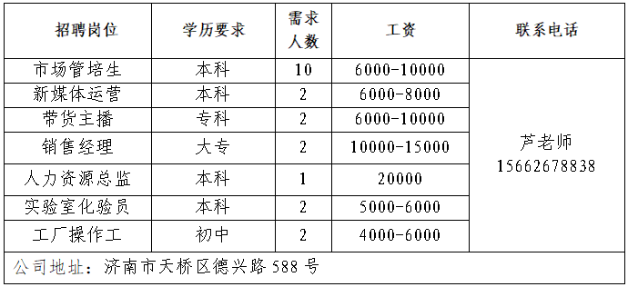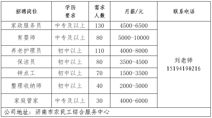 企业报名参加招聘,求职者咨询更多招聘岗位信息请致电市人才市场: