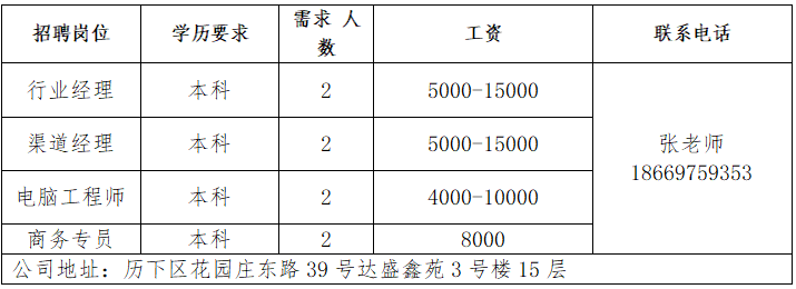 企业报名参加招聘,求职者咨询更多招聘岗位信息请致电市人才市场:
