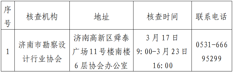 济南考区的资格核查工作由济南市勘察设计行业协会负责,报名期间资格核查时间:3月17日-3月23日(工作日9:00-11:30,13:30-16:30,3月23日截止到16:00,周末除外)。