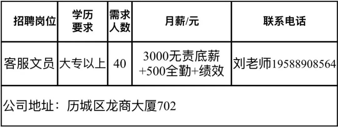 企业报名参加招聘,求职者咨询更多招聘岗位信息请致电市人力资源市场: