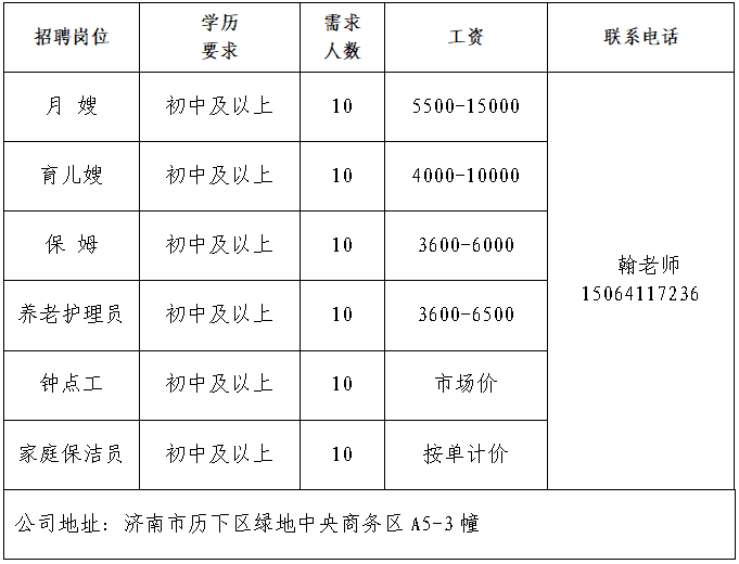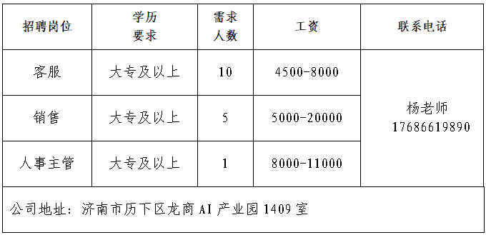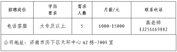 企业报名参加招聘,求职者咨询更多招聘岗位信息请致电市人力资源市场:
