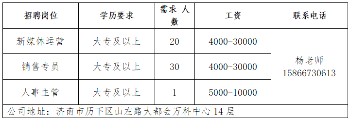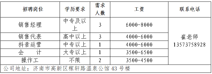 企业报名参加招聘,求职者咨询更多招聘岗位信息请致电市人才市场: