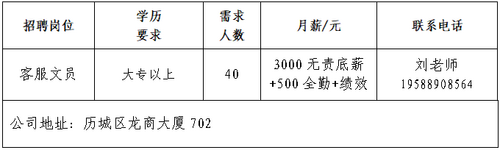 企业报名参加招聘,求职者咨询更多招聘岗位信息请致电市人力资源市场: