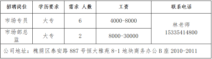 企业报名参加招聘,求职者咨询更多招聘岗位信息请致电市人才市场: