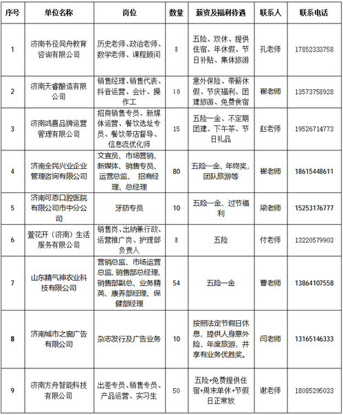 届时济南书径同舟教育咨询有限公司、济南天睿酿造有限公司等知名企业现场招贤纳士,职位涵盖老师、课程顾问、会计、销售经理、新媒体运营、杂志发行及广告业务等各类岗位1820多个。活动当日,同时开展AI直播带岗(扫码上线观看)。