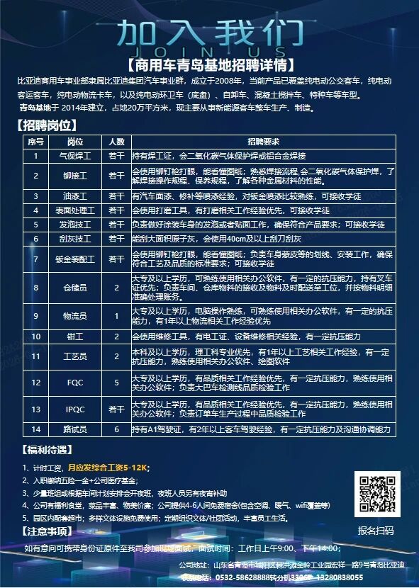 青岛市比亚迪汽车有限公司工作地点:青岛市城阳区