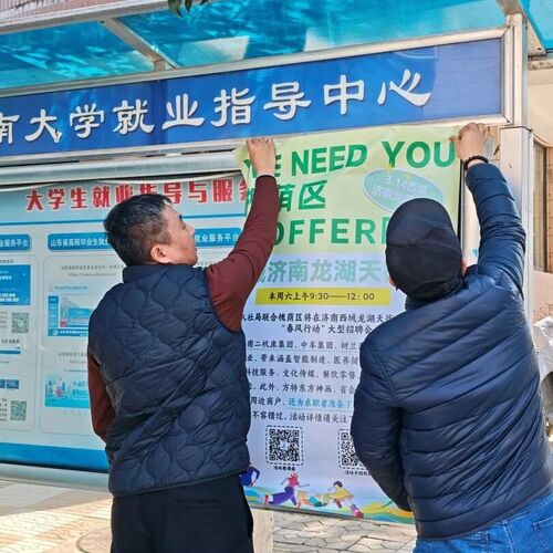 “线下”主动对接山工艺、济南大学、山东第一医科大学、省劳技等10余所高校,组织人员进校园张贴活动宣传海报,确保了就业服务的触角延伸至社会各个角落,宣传到每一位有意愿的求职者。