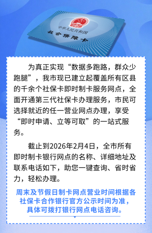 济南市社会保障卡合作银行服务网点全名单(2026年2月4日发布)