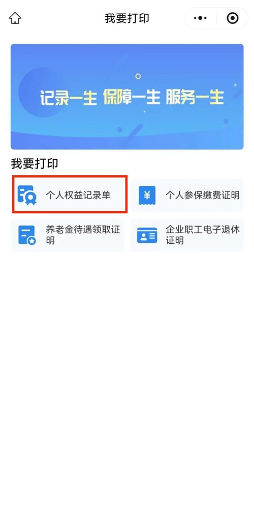 在这个专区除了可以打印个人权益记录单之外,您还可以打印个人参保缴费证明、养老金待遇领取证明、企业职工电子退休证明等。