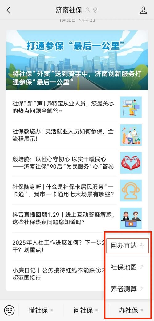 探索更多社保业务便捷办理途径快关注“济南社保”微信公众号“网办直达”走起吧!
