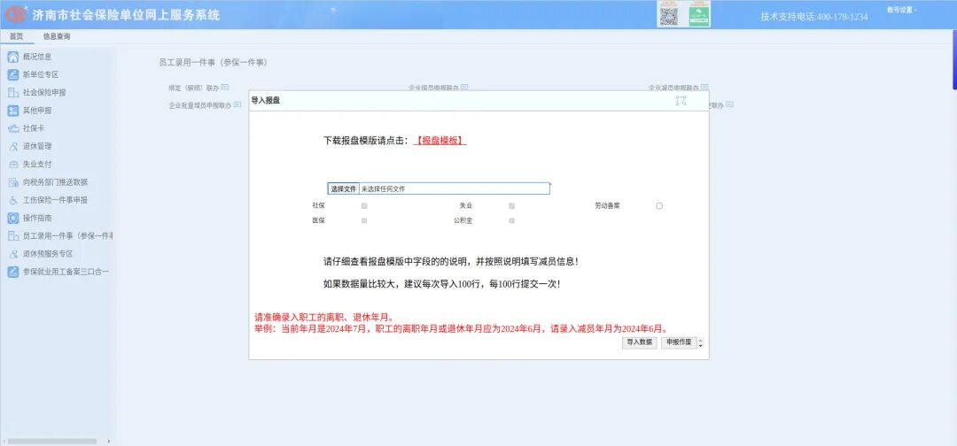 如果企业在招聘季一次性录用了多名员工,可以使用“企业批量增员申报联办”“企业批量减员申报联办”功能,导入报盘文件后,就能实现多人同时参保、停保,大大减少重复操作,提高办事效率。