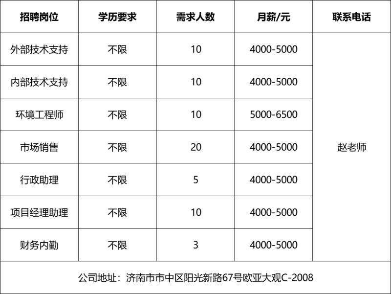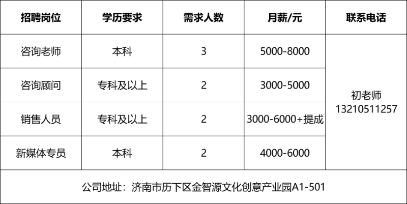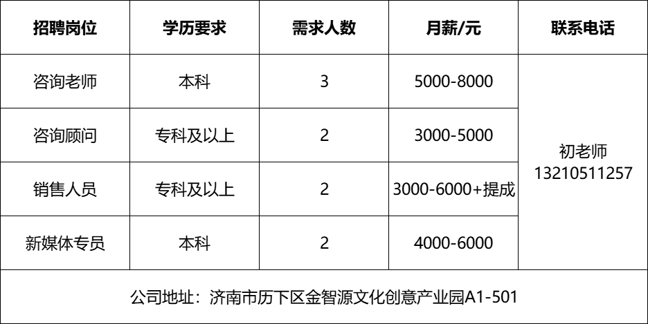 企业报名参加招聘,求职者咨询更多招聘岗位信息请致电市人才市场: