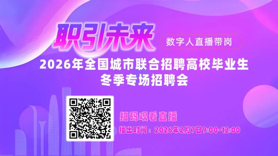 为畅通求职招聘渠道,促进高校毕业生等重点群体高质量充分就业,市公共就业服务中心定于2月7日(周六)市人才市场举办职引未来—2026年全国城市联合招聘济南站冬季专场招聘会。