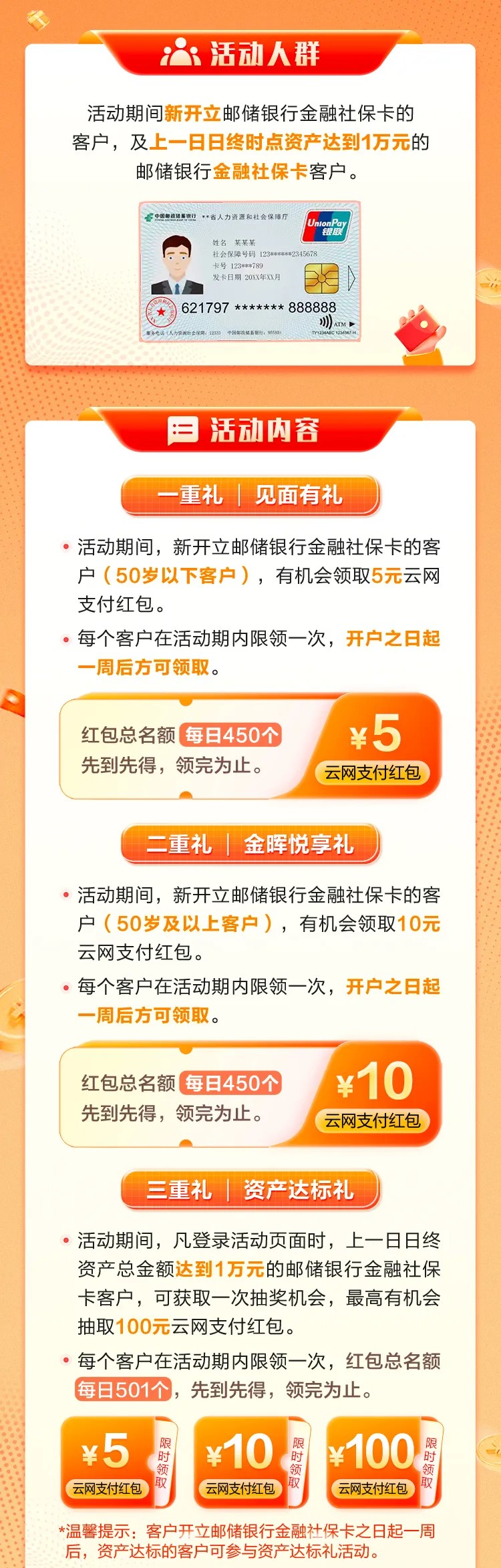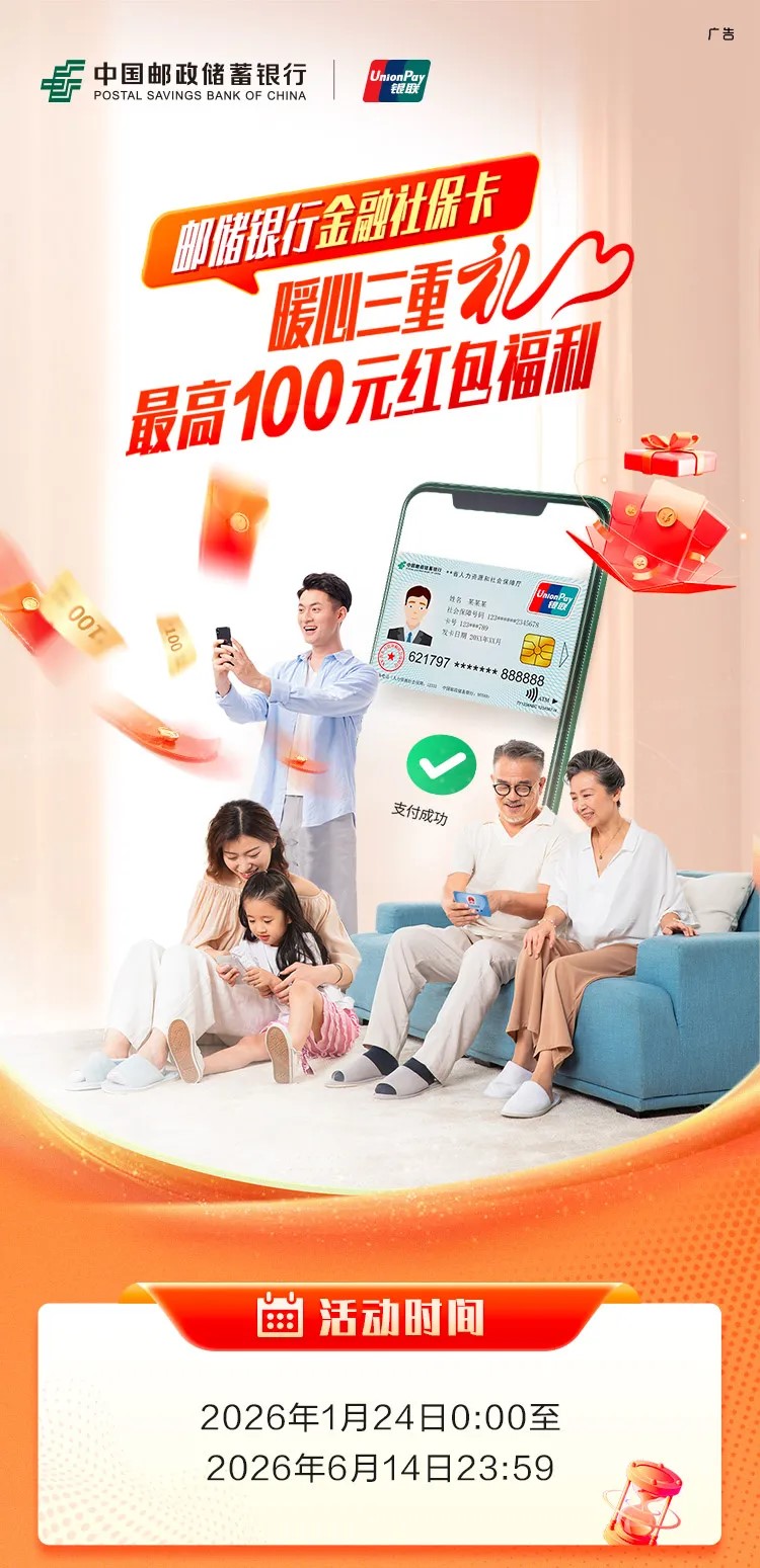 【暖心邮礼】社保卡暖心三重礼,最高100元红包福利!