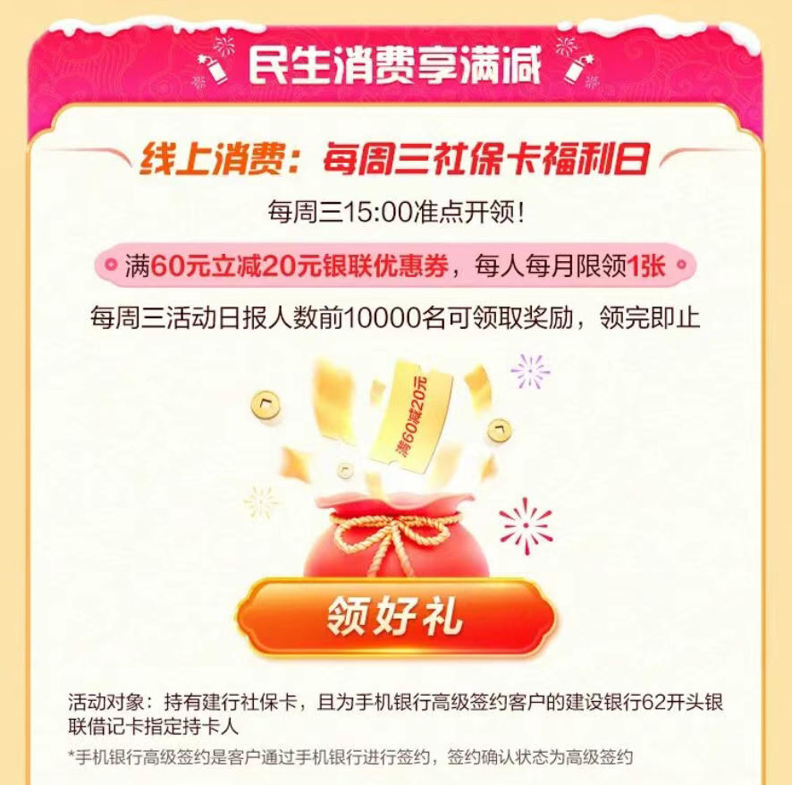 建行社保卡春节不打烊,迎新春好礼不停歇