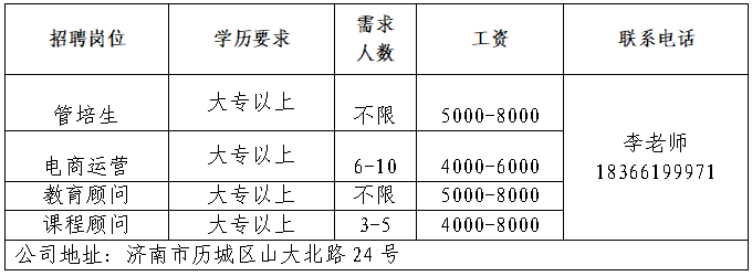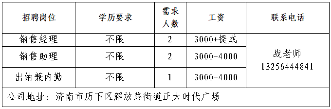 企业报名参加招聘,求职者咨询更多招聘岗位信息请致电市人才市场: