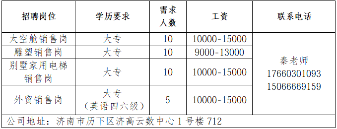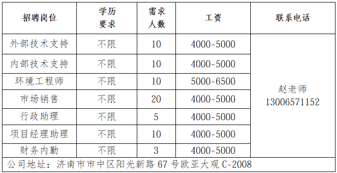 企业报名参加招聘,求职者咨询更多招聘岗位信息请致电市人才市场: