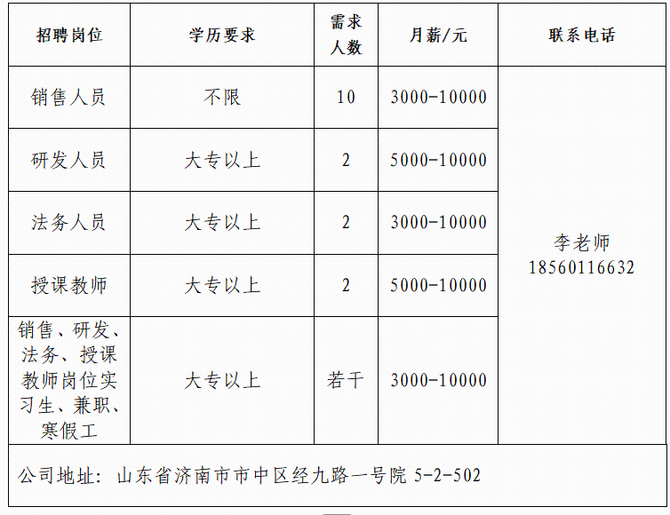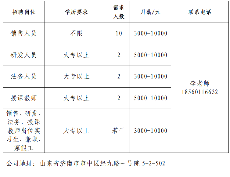 联系人:王老师 联系电话:0531-61317801