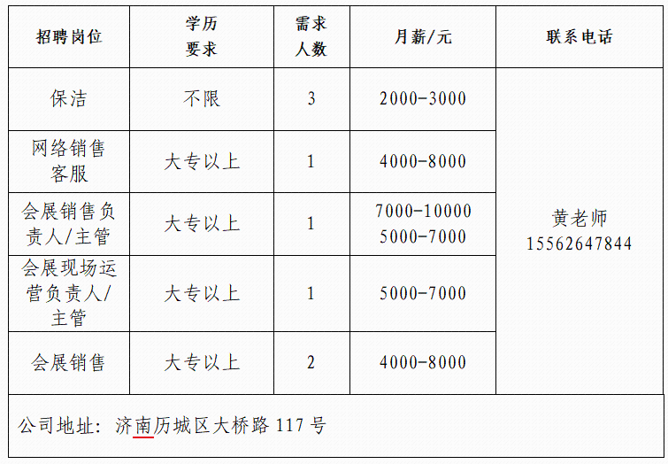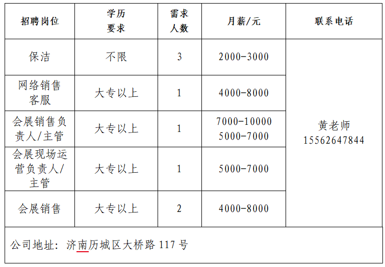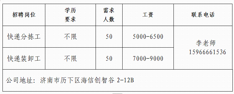 企业报名参加招聘,求职者咨询更多招聘岗位信息请致电市人力资源市场:
