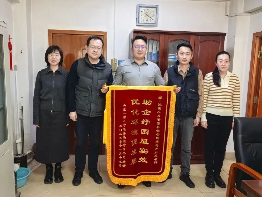从创新机制搭建到精准融资对接,从优质资源链接到多元平台赋能,区人社局的服务始终紧扣企业发展脉搏,彰显了“主动靠前、精准赋能”的服务温度与担当。一面锦旗,一份肯定,更是一份沉甸甸的责任。这份信任,既是对区人社局过往工作的高度认可,更是激励全体工作人员努力前行的动力。展望未来,槐荫区人社局将始终坚守服务初心,以更务实的作风、更有力的举措,持续优化对企服务质效,用真心真情回应企业期盼,奋力续写助企纾困、赋能发展新篇章。