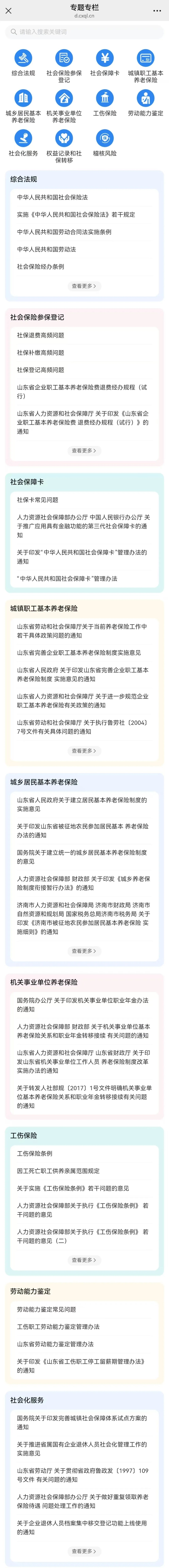 参保必读:从参保登记到查询打印,入门指南一目了然;养老无忧:聚焦退休办理、待遇资格认证等,为您解答养老关切;工伤守护:详解工伤待遇、劳动能力鉴定等,为您的工作保驾护航;社保卡百科:关于社保卡申领、启用、换卡等所有问题,这里都有答案;机构职责:介绍济南社保经办工作内容。内容持续更新,新增短视频、长图解读等形式,让社保政策条文变得生动易懂,助您轻松“玩转”社保。