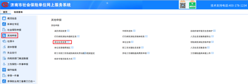 参保单位基本信息发生变化的,可通过济南市社会保险单位网上服务系统-其它申报-单位信息变更申请变更,单位录入变更信息并上传相关材料,经办机构审核通过的完成变更,审核不通过的可在网上申报系统查询反馈结果。