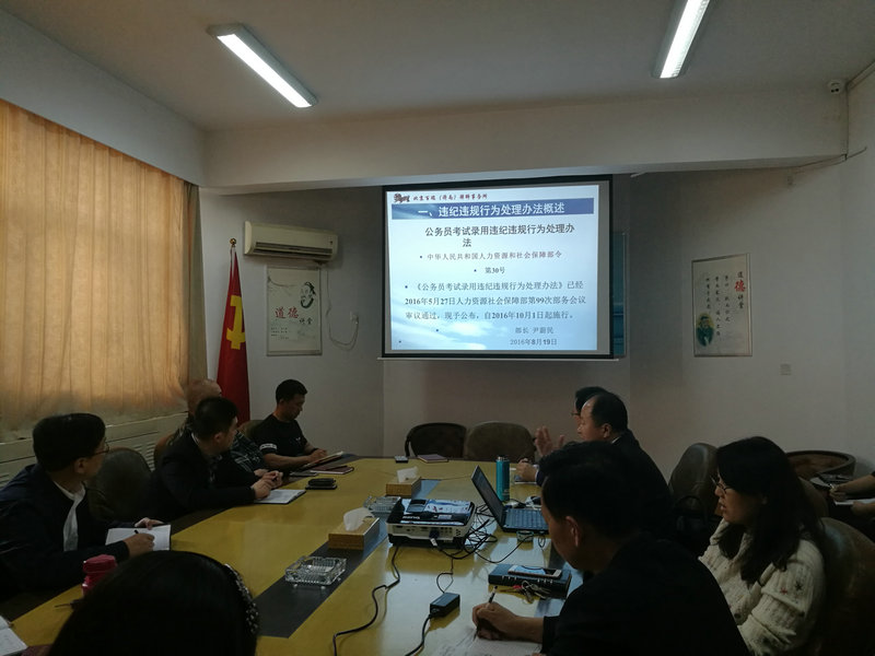 为了提高市人事考试中心全体工作人员法治意识和法律素养,防范和降低人事考试领域法律诉讼案件,2018年3月30日,市考试中心组织开展法律讲座活动,邀请王义国律师家,普及人事考试领域法律知识,并对考试工作中遇到的问题进行研究分析。王义国律师解读了中华人民共和国人力资源和社会保障部第30、31号令、《公务员考试录用违纪违规行为处理办法》和《专业技术人员资格考试违纪违规行为处理规定》,分析了人事考试工作面临的新形势,并就人事考试诉讼案例,针对考试违纪违规情况的取证、认定以及处理方法和程序进行了详细讲解。通过讲座,大家增强了法治意识,将在今后的考试工作中进一步细化流程、规范程序,确保每一项违规违纪行为的处理有法可依、程序严谨。