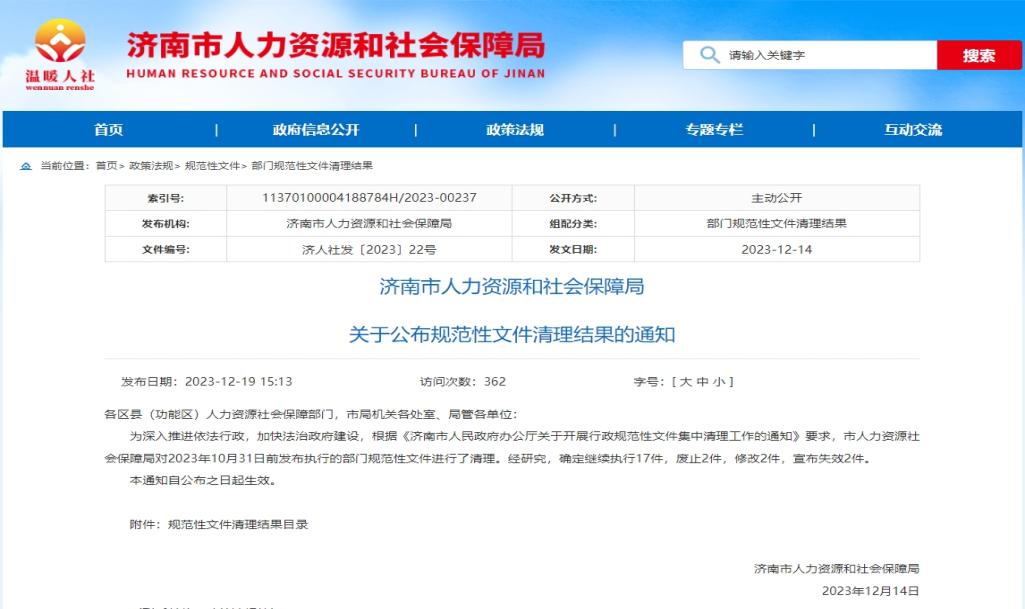 - 标题: 济南市人力资源和社会保障局2023年政府信息公开工作年度报告