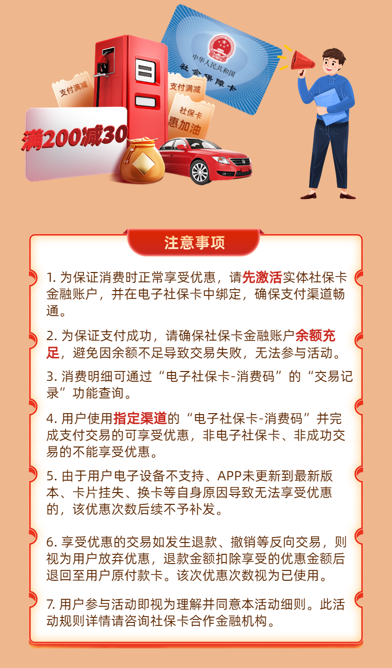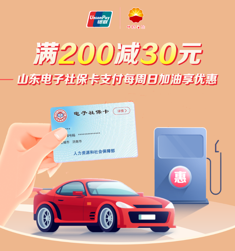 @所有参保人,周日带社保卡去加油吧!每周日满200减30,快来参与!